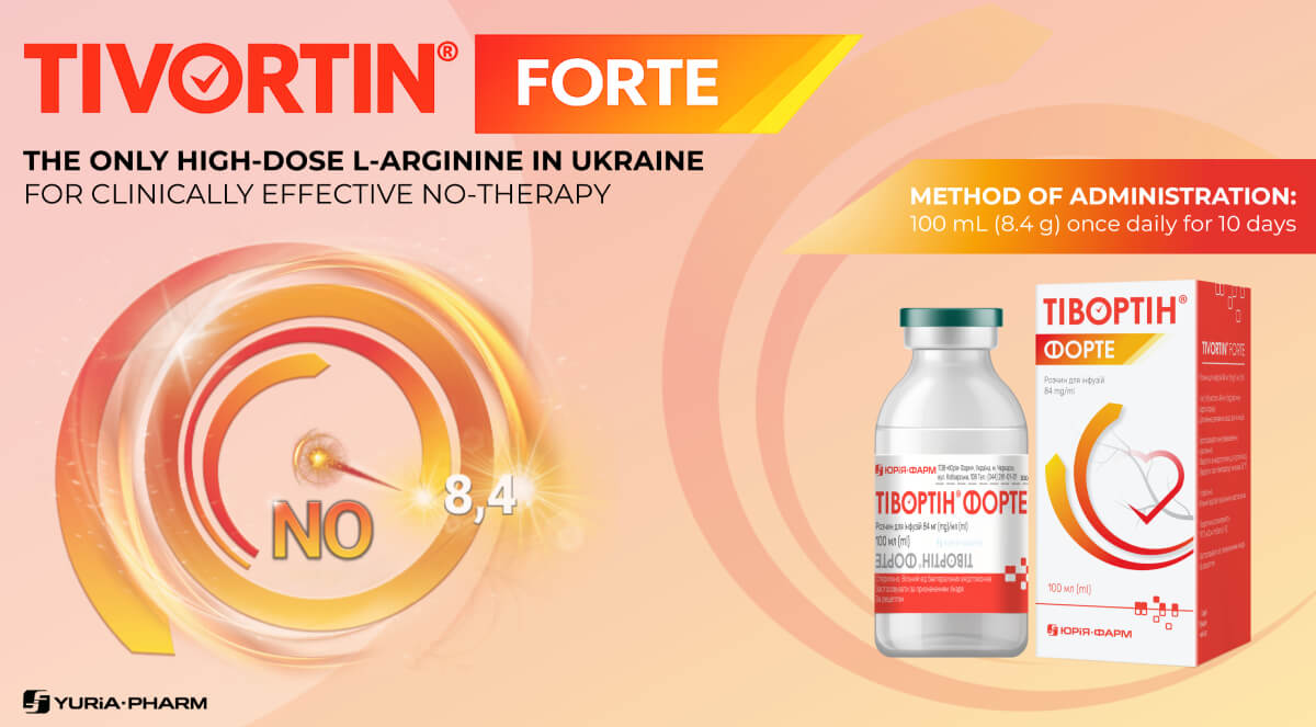 Unlike all parenteral arginines, which contain 4.2 g, Tivortin® Forte, the only one on the Ukrainian market, contains 8.4 g of L-arginine in 100 ml.