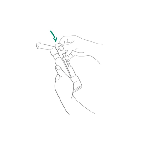 Натиснути великим пальцем руки на кнопку зверху до упору для того, щоб ввести рідину для інгаляції всередину приладу.